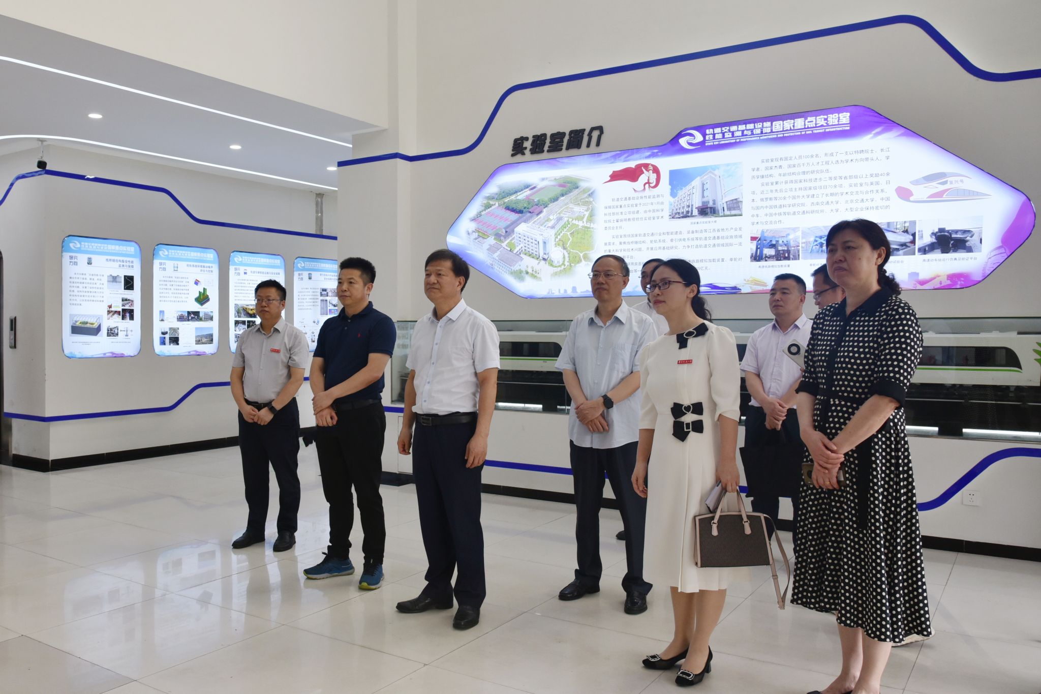 在轨道交通基础设施性能监测与保障国家重点实验室,陈兴超一行先后参观了高铁供电监控系统室、城轨监控系统室、高铁供电大数据研究室、基础设施在线监测实验室、轨道车辆VR/AR研究室、岩土工程实验室、高速列车运行仿真实验室。
