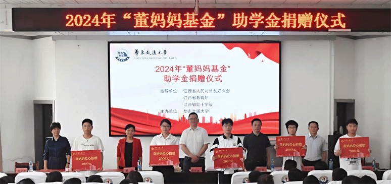 6月14日,“董妈妈基金”助学金捐赠仪式在机电学院学术报告厅举行。董淑贞女士之子、上海彪亨建筑工程有限公司总经理庞玮颖,江西省人民对外友好协会专职副会长涂安波,江西省红十字会专职副会长戴莹,江西省教育厅国际合作与交流处一级调研员彭钢,我校党委委员、副校长肖乾出席捐赠仪式。