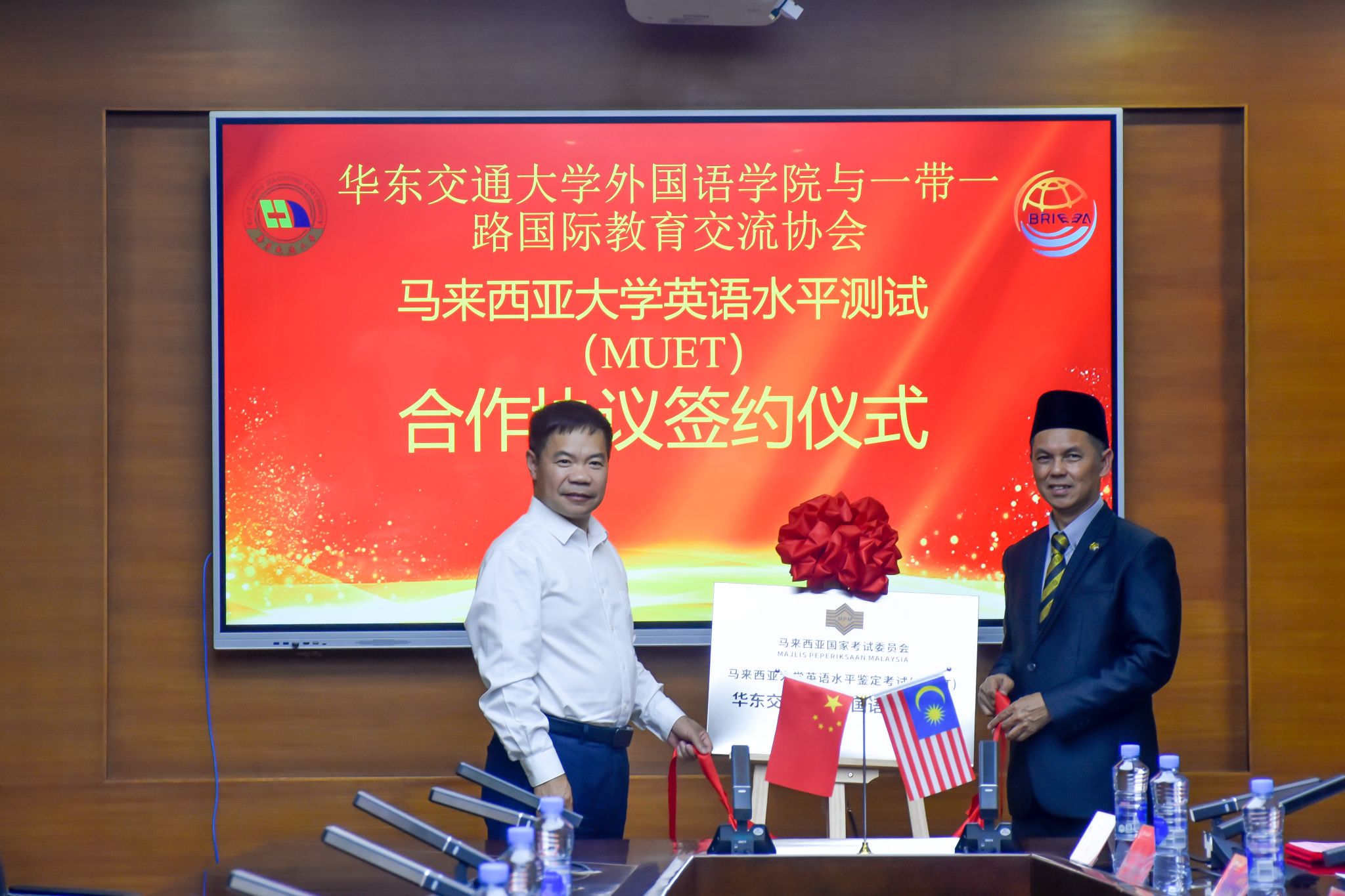 10月15日,马来西亚大学英语水平测试(MUET)合作协议签约仪式在我校举行。马来西亚教育部考试委员会首席执行官阿德南、“一带一路”国际教育交流协会执行会长赖辉煌、我校副校长杨辉等参加签约仪式。