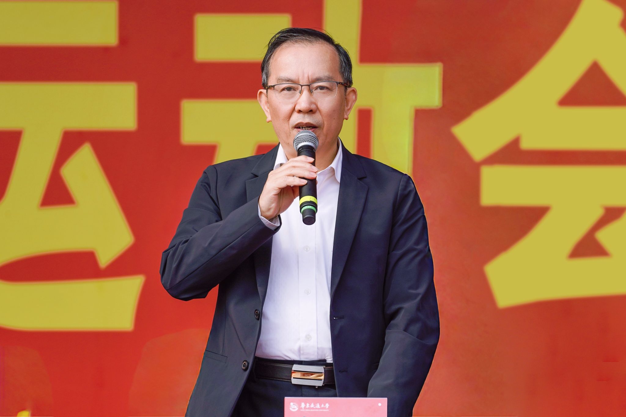 校体育运动委员会主任、副校长肖乾致开幕词。他指出,一年多来,学校秉持体育为教育加油、体格为品格加分、体质为素质加料、体能为才能加力的“四为四加”理念,不断开创学校体育事业高质量发展新局面。一年一度的校运会,既是一场关于速度与激情、团结与协作的精彩盛会,也是一次汗水与泪水交织、梦想与荣耀交汇的青春盛宴。希望全体运动员顽强拼搏、奋勇争先,赛出水平、赛出风格,赛出成绩、赛出友谊;希望全体教练员、裁判员及工作人员恪尽职守、公正裁决,严格赛纪、严肃赛风;希望所有观众及啦啦队文明观赛、热情鼓掌、尽情欢呼;希望广大师生共同努力、携手同行,为本届运动会营造良好的比赛氛围,展现积极的道德风尚。