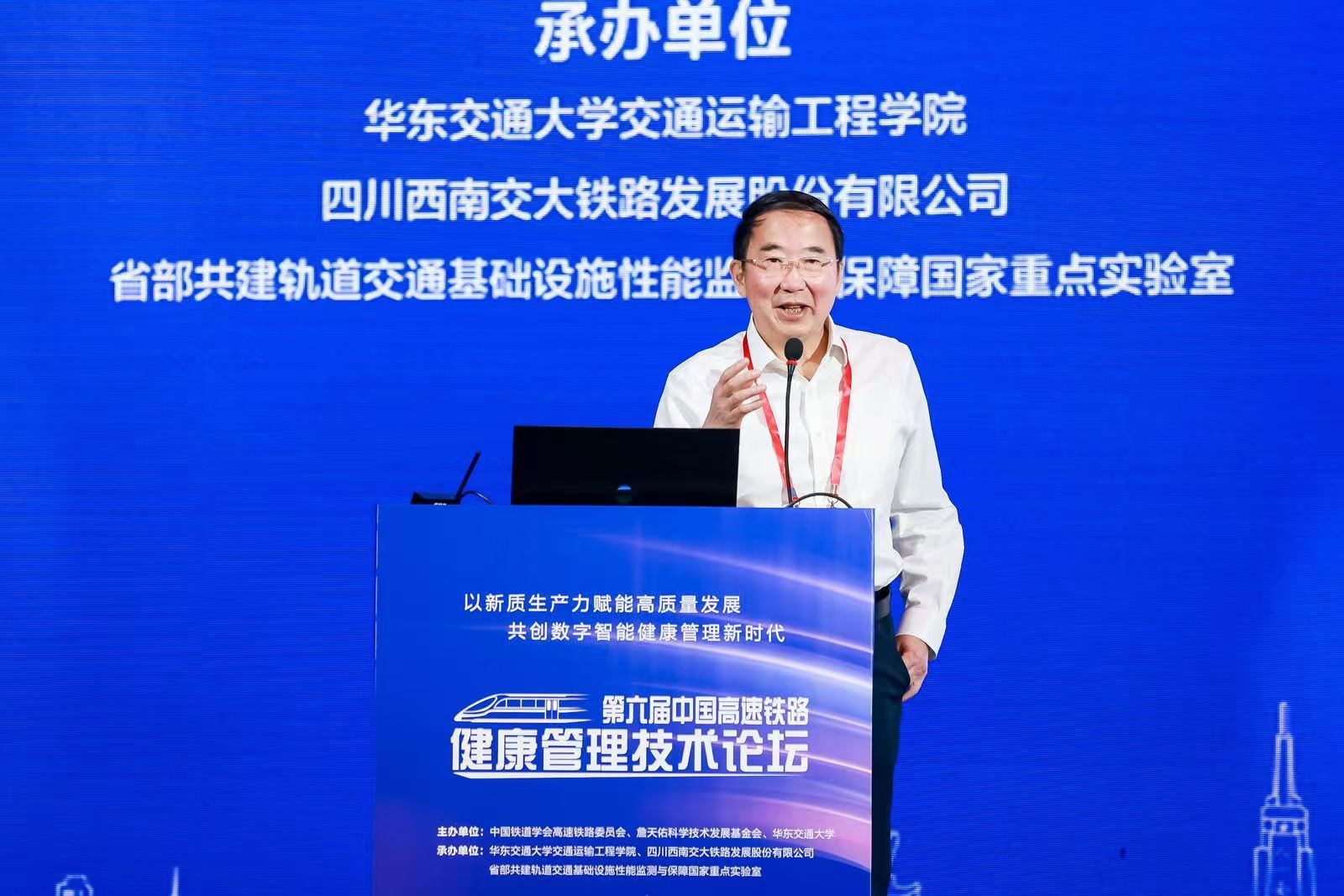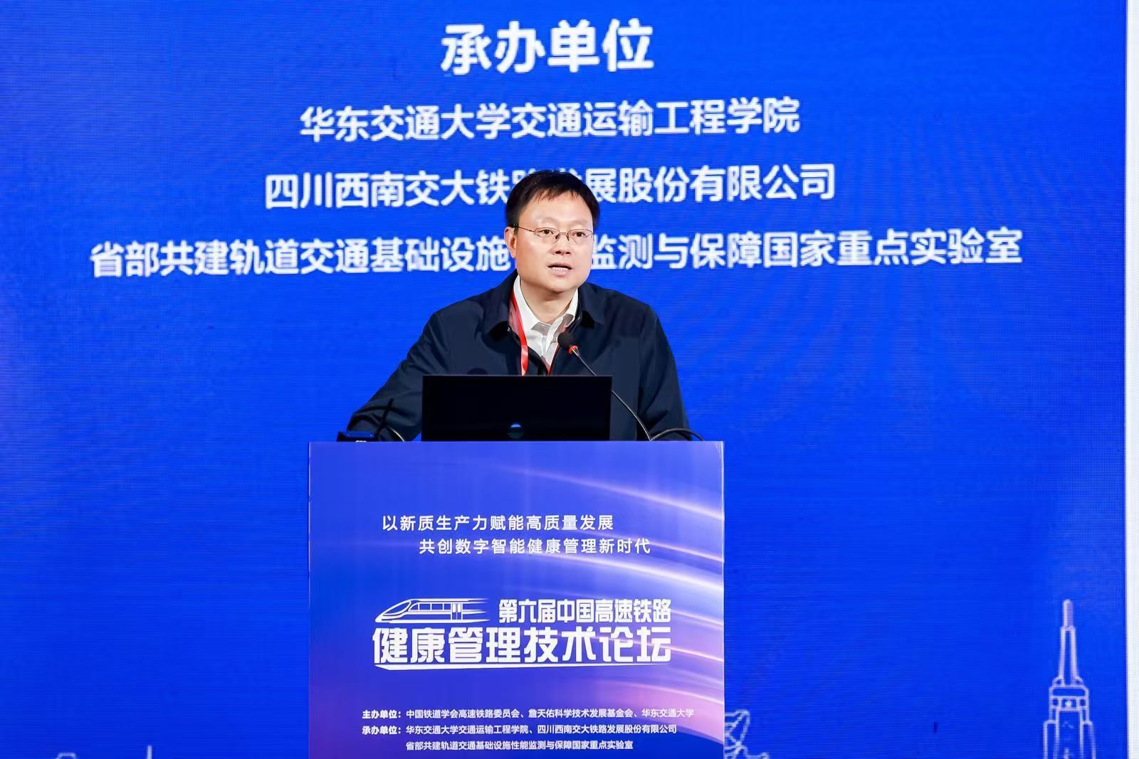 11月2日至4日,由中国铁道学会高速铁路委员会、詹天佑科学技术发展基金会和我校主办,我校交通学院、四川西南交大铁路发展股份有限公司和省部共建轨道交通基础设施性能监测与保障国家重点实验室承办的第六届中国高速铁路健康管理技术论坛在南昌举行。中国工程院院士冯夏庭,中国科学院院士于起峰,我校党委副书记、校长徐长节等400余名专家学者,聚焦“新质生产力赋能高质量发展,共创数字智能健康管理新时代”主题,针对中国高速铁路发展新阶段出现的前沿热点问题,深入探讨高速铁路健康管理的新理论、新技术、新趋势。