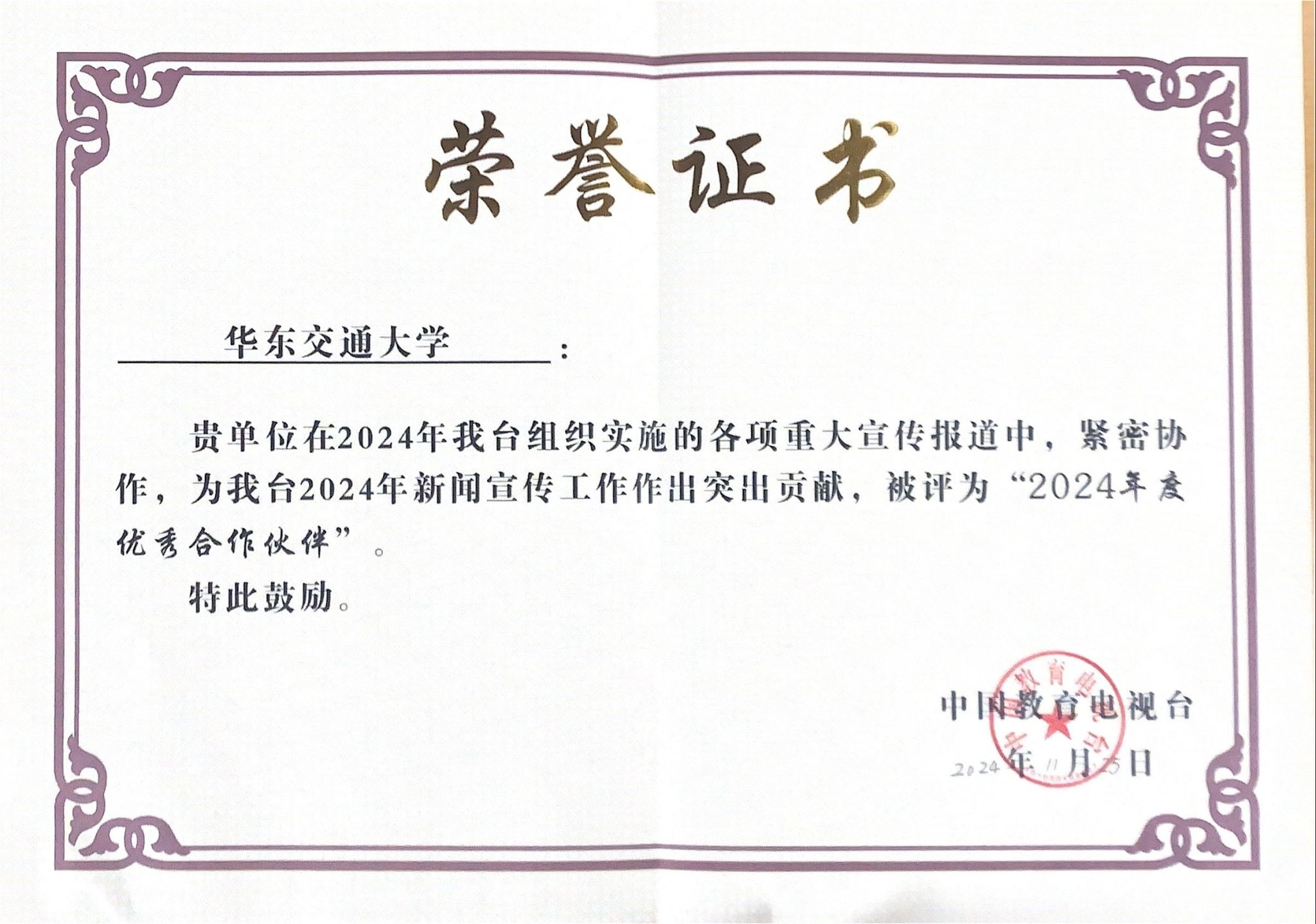 近日,中国教育电视台表彰了2024年度杰出合作伙伴、最佳合作伙伴、优秀合作伙伴,我校被评为“优秀合作伙伴”,至此,我校已连续两年获得该荣誉。