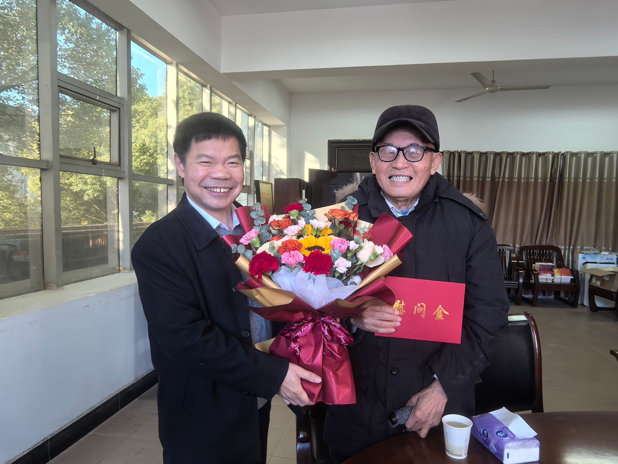 校领导罗文俊、杨辉、杨德敏、黄志超、曹国定、肖乾、欧阳志刚还分别走访慰问了邓凌云、赵雁滨、刘志红、裘友林、杨婷、王建华、孙小飞等离退休老同志及师生代表。