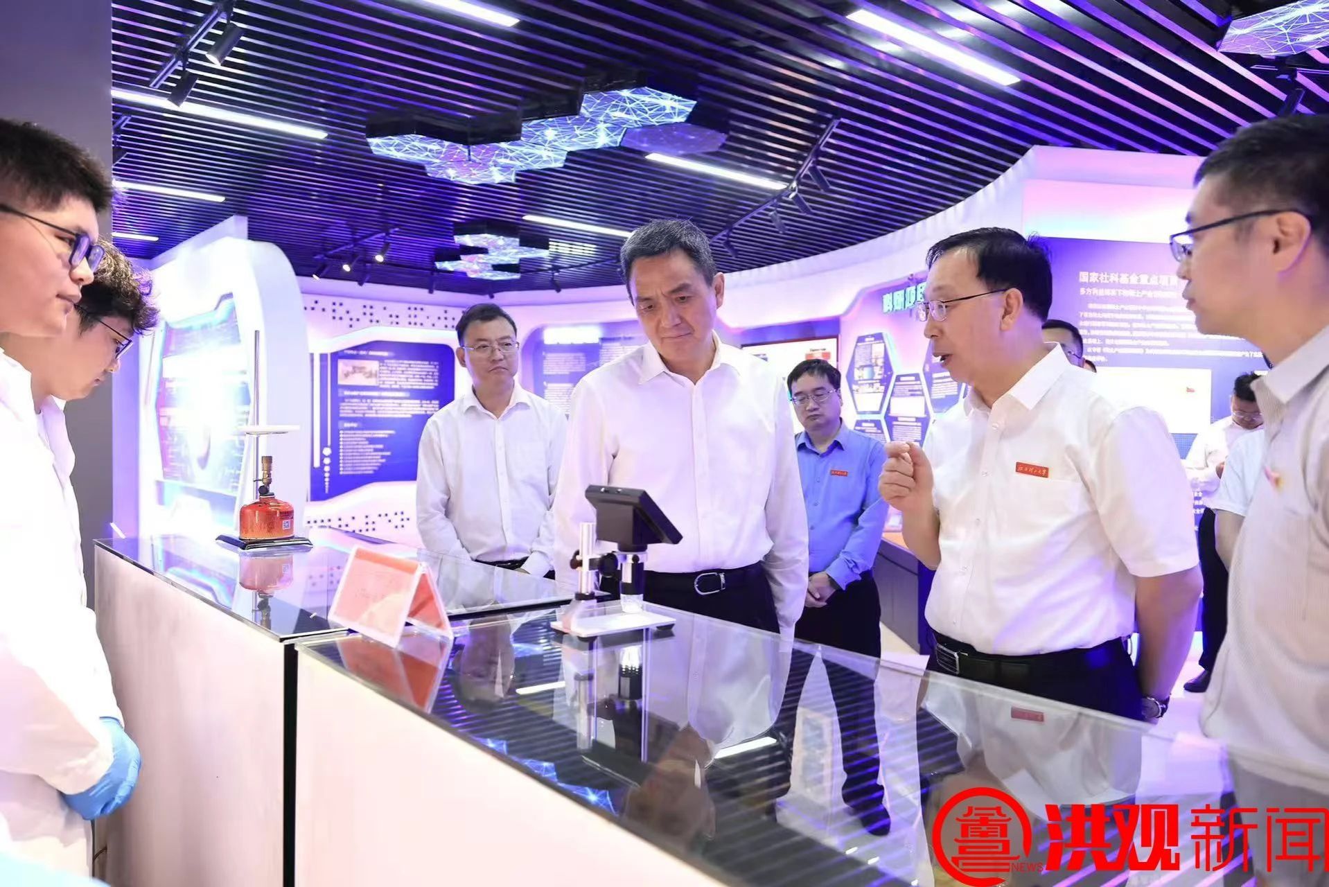 在江西理工大学南昌校区,李红军参观学校科技展厅、实验室等,与学校负责人深入交流,详细了解学校在专业人才培养、科研团队打造、科研成果转化等方面取得的成效。李红军对学校的办学成就给予充分肯定,对学校全力服务南昌产业发展表示感谢。他指出,当前,南昌正全面落实省会引领战略,深入推进“一枢纽四中心”建设,深化落实“8810”行动计划,坚持科技创新和产业创新深度融合,全力构建具有南昌特色的现代化产业体系,迫切需要驻昌高校人才和智力的支撑。希望江西理工大学南昌校区把自身发展与南昌发展结合起来,充分发挥人才荟萃、资源密集等优势,进一步加大与南昌的合作力度,共同把科技人才培养、关键技术攻关等工作做深做实,推动产业发展与高等教育良性互动、平台建设与人才培育相互成就,不断促进人才链、创新链、产业链深度融合,携手开创高质量发展新局面。