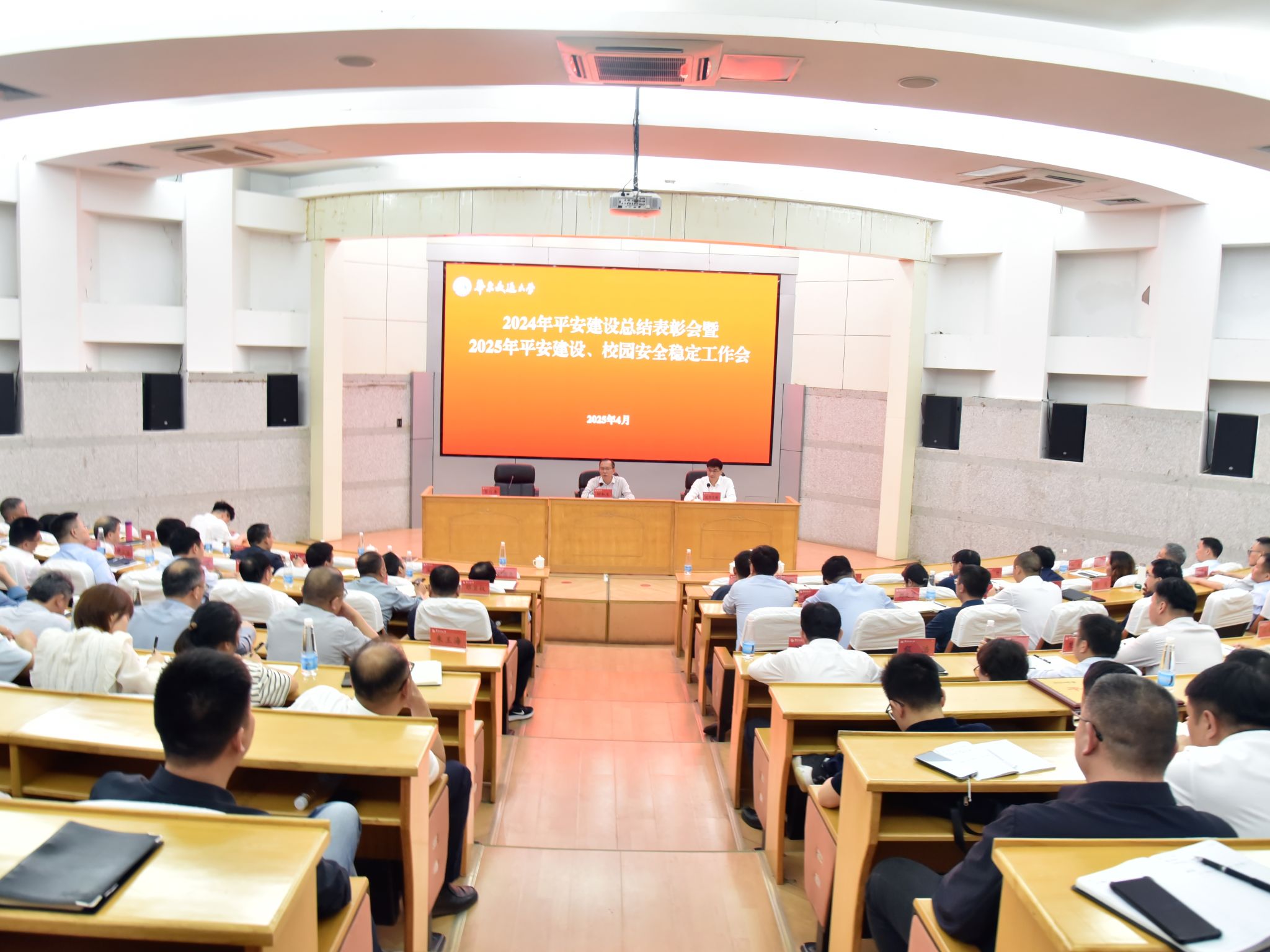 4月28日下午,学校召开2024年平安建设总结表彰会暨2025年平安建设、校园安全稳定工作会,对2024年平安建设工作进行总结表彰,就2025年平安建设、校园安全稳定工作进行部署。校党委书记柳和生出席并讲话。他强调,要聚焦形势、锚定目标,强化履职尽责、弘扬斗争精神,同向同心筑铜墙、铁血铁心铸铁壁,持续强化风险防范意识、增强应急处置本领,将“底线”与“极限”化为坚固防线,以一域之安助大局之全,为建设更高水平的平安江西作出新的更大贡献。校党委委员、副校长欧阳志刚主持会议。