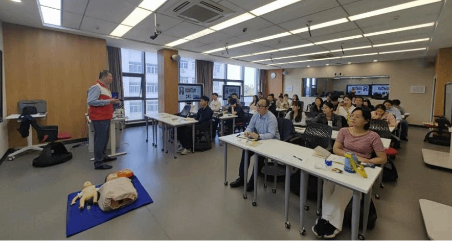 学校将心肺复苏、创伤救护等核心急救培训纳入新生入学教育课程体系;结合专业特色与实践要求,每年对参与实验实操、国际留学生开设专场急救知识技能培训,实现急救教育与校园生活、学习的深度融合。持续多年开设《学校常见传染病防治知识》等健康教育选修课程,引导学生主动学习掌握更多健康知识和急救技能。