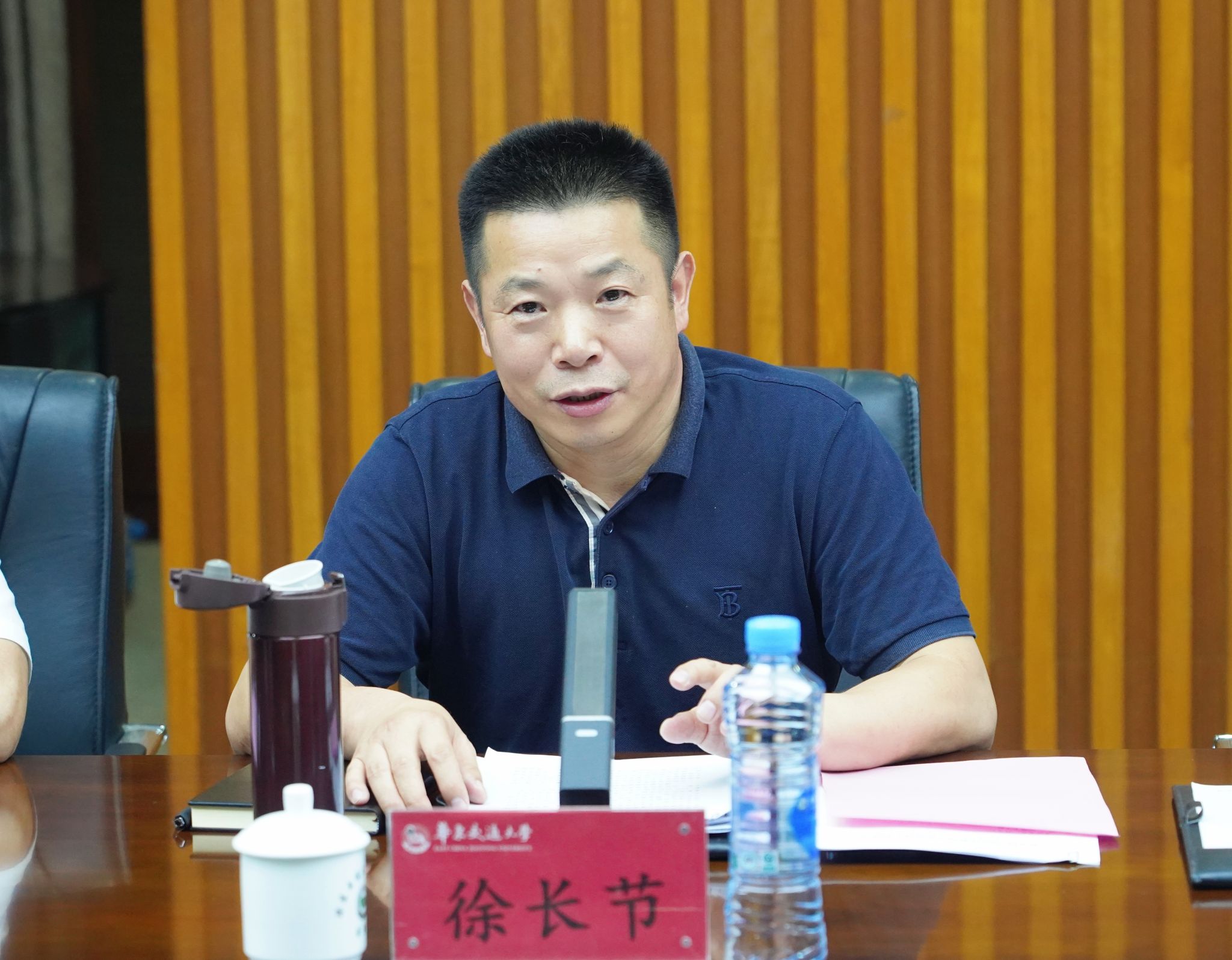 座谈会上,徐长节对刘拥华一行的到来表示欢迎,并简要介绍了校情。他指出,中交中南局长期致力于基础设施建设与工程技术创新,华东交大在土木工程、交通建设等领域有鲜明的学科特色和人才优势,双方优势互补,具有广阔的合作空间。学校将积极推动与中交中南工程局的多维度合作,向企业输送高质量专业人才,共同培养高素质应用型、实践型人才,合作开展科研项目,共同推动行业技术进步,为国家基础设施建设贡献更多力量。