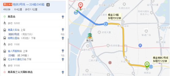 线路二:南昌站-会场(南昌格兰云天国际酒店)