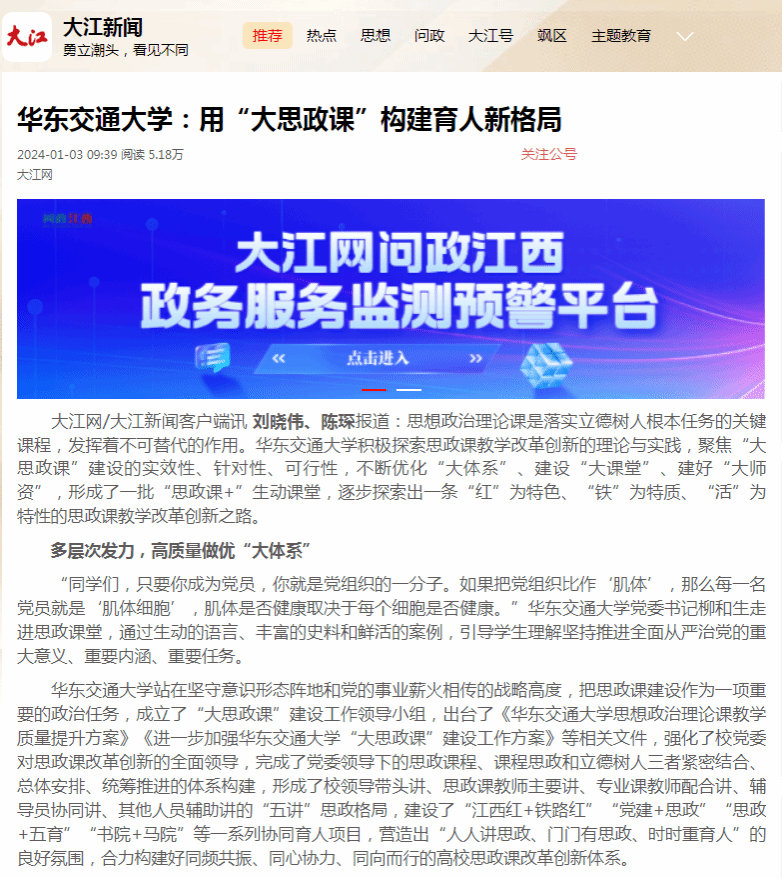 【大江新闻】香港最新最准资料库:用“大思政课”构建育人新格局