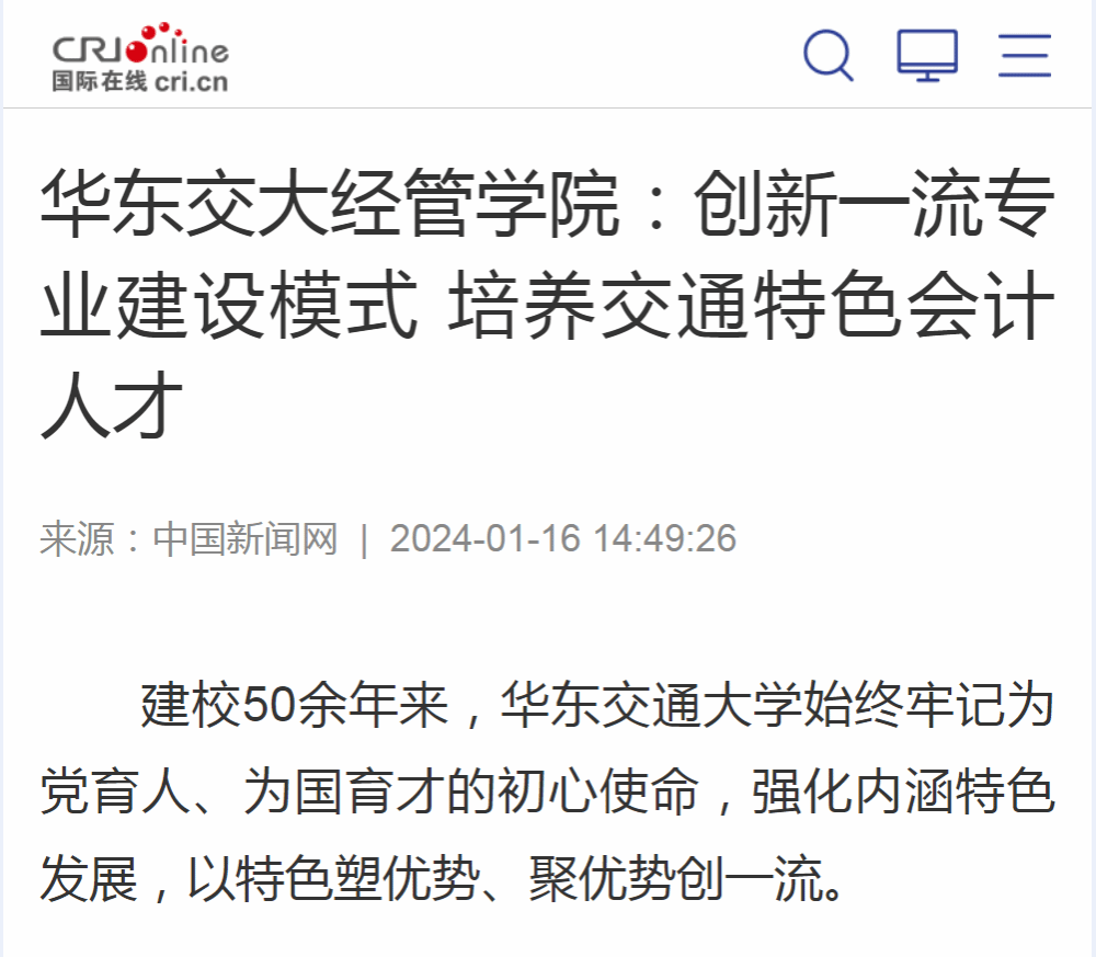 作为学校的特色专业,经济管理学院会计专业始终坚持“以学生为中心”的育人理念,把好人才培养质量关,探索形成了“一心二融三联四同”交通特色会计一流专业建设模式,为行业特色一流专业建设打造示范样板。2019年会计学专业获批国家级一流本科专业建设点。