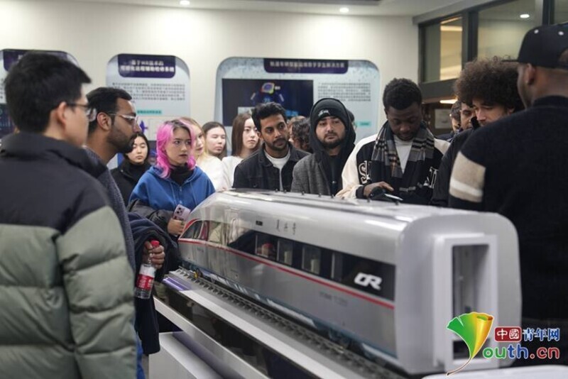 “太有意思了!我好像在参观真的列车!”在华东交大轨道车辆系统实训VR重点实验室里,巴基斯坦留学生Umair跟着系统指示,利用VR设备体验列车检修程序,不时发出赞叹声。中国铁路南昌局集团有限公司欧阳吉祥发挥专业优势,向大家绘声绘色讲起动车组受电弓的升弓、降弓的动作原理。在“复兴号”模型前面,中外青年久久驻足,聆听“复兴号”的发展历史和特点。