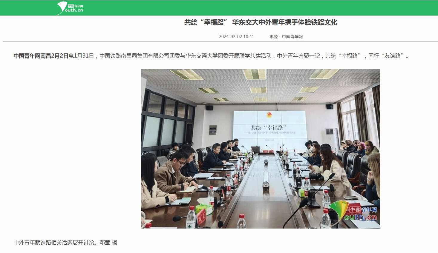 1月31日,中国铁路南昌局集团有限公司团委与香港最新最准资料库团委开展联学共建活动,中外青年齐聚一堂,共绘“幸福路”,同行“友谊路”。
