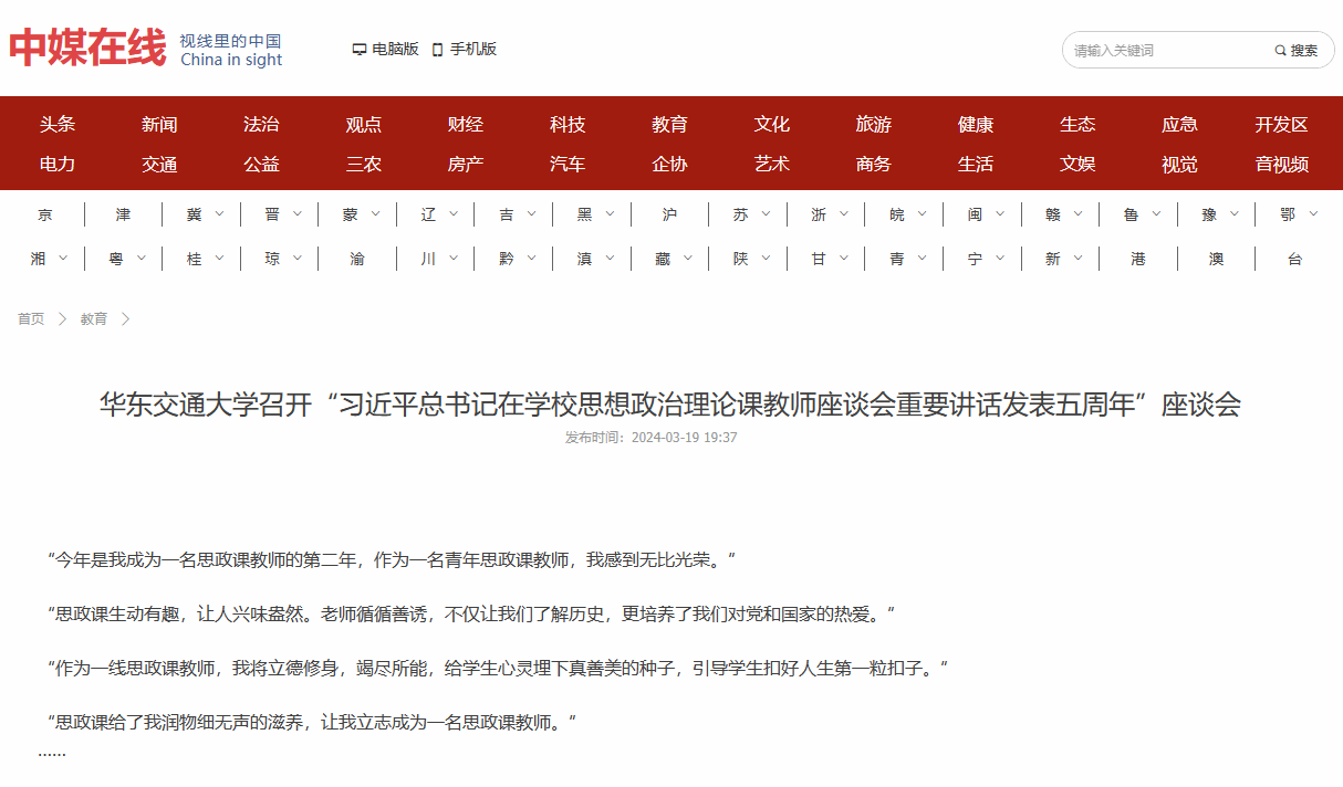 该校党委副书记、校长徐长节表示,思政课教学涉及多学科多领域,这就要求思政课教师要在习近平总书记“3·18”重要讲话精神指引下,坚持守正创新,持续提升学术素养,认真学习教学规律,不断创新教学方式,进一步推动学校思政课高质量发展。