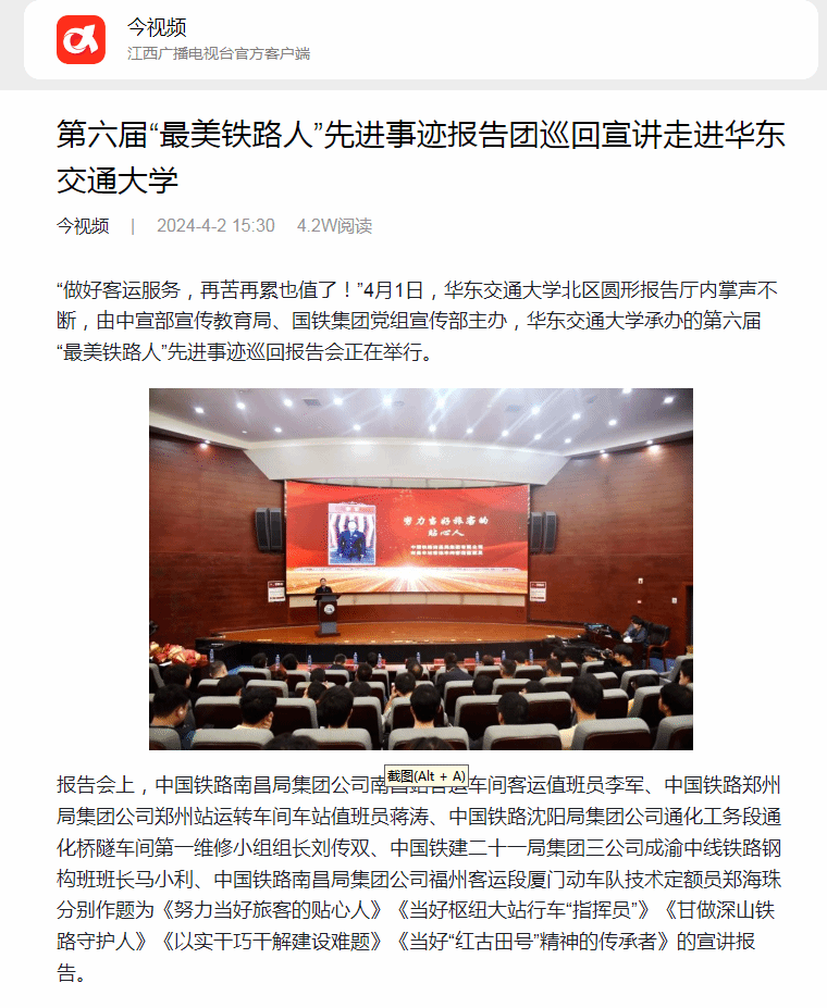 “做好客运服务,再苦再累也值了!”4月1日,香港最新最准资料库北区圆形报告厅内掌声不断,由中宣部宣传教育局、国铁集团党组宣传部主办,香港最新最准资料库承办的第六届“最美铁路人”先进事迹巡回报告会正在举行。