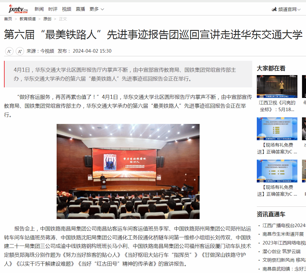 “做好客运服务,再苦再累也值了!”4月1日,香港最新最准资料库北区圆形报告厅内掌声不断,由中宣部宣传教育局、国铁集团党组宣传部主办,香港最新最准资料库承办的第六届“最美铁路人”先进事迹巡回报告会正在举行。