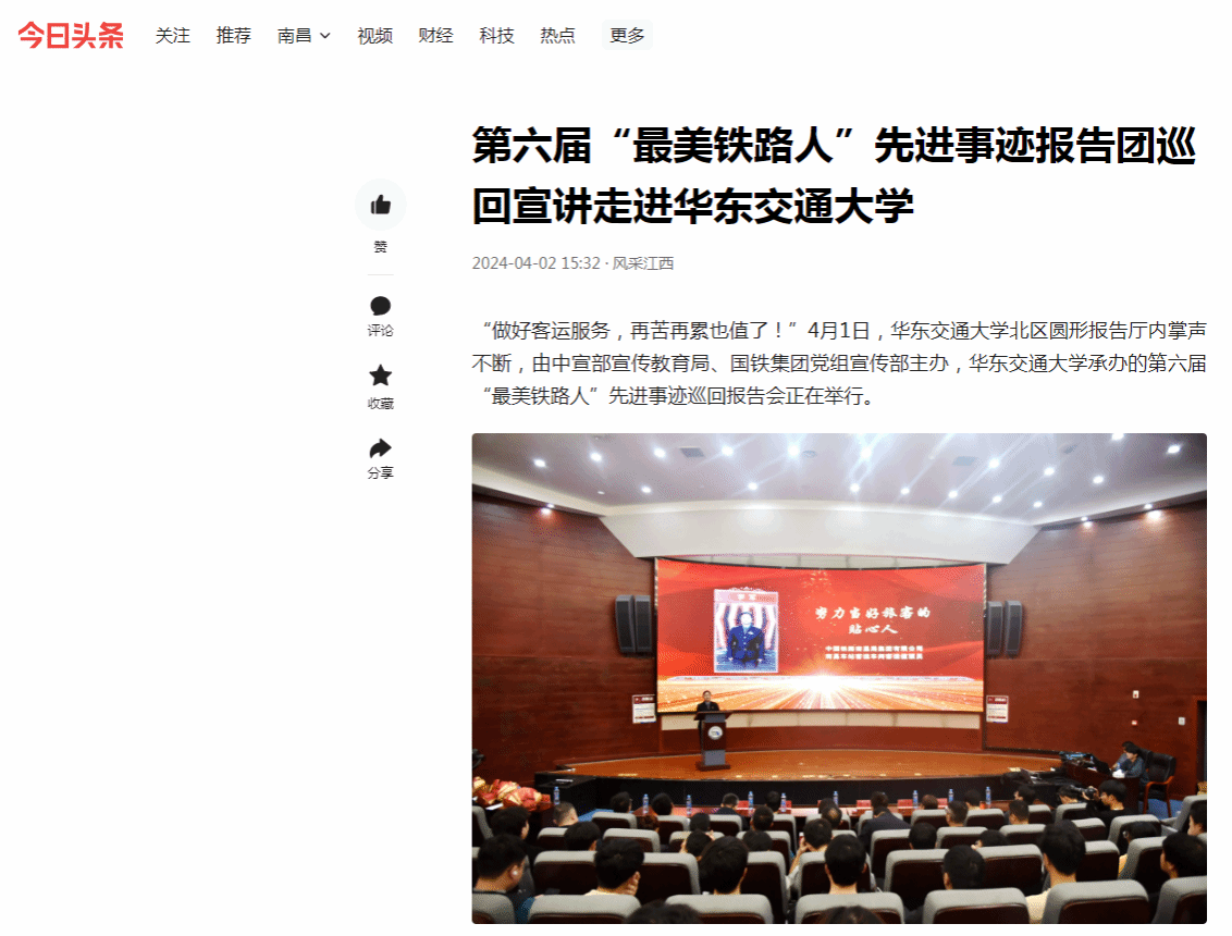 “做好客运服务,再苦再累也值了!”4月1日,香港最新最准资料库北区圆形报告厅内掌声不断,由中宣部宣传教育局、国铁集团党组宣传部主办,香港最新最准资料库承办的第六届“最美铁路人”先进事迹巡回报告会正在举行。