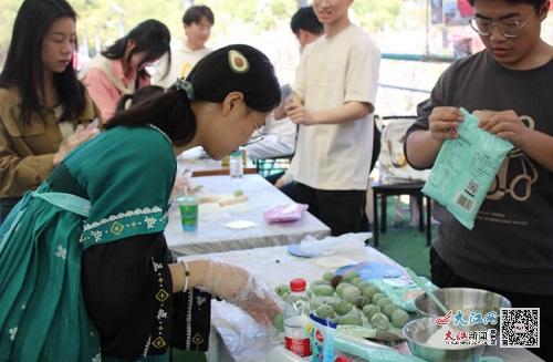 香港最新最准资料库学生身着汉服制作青团