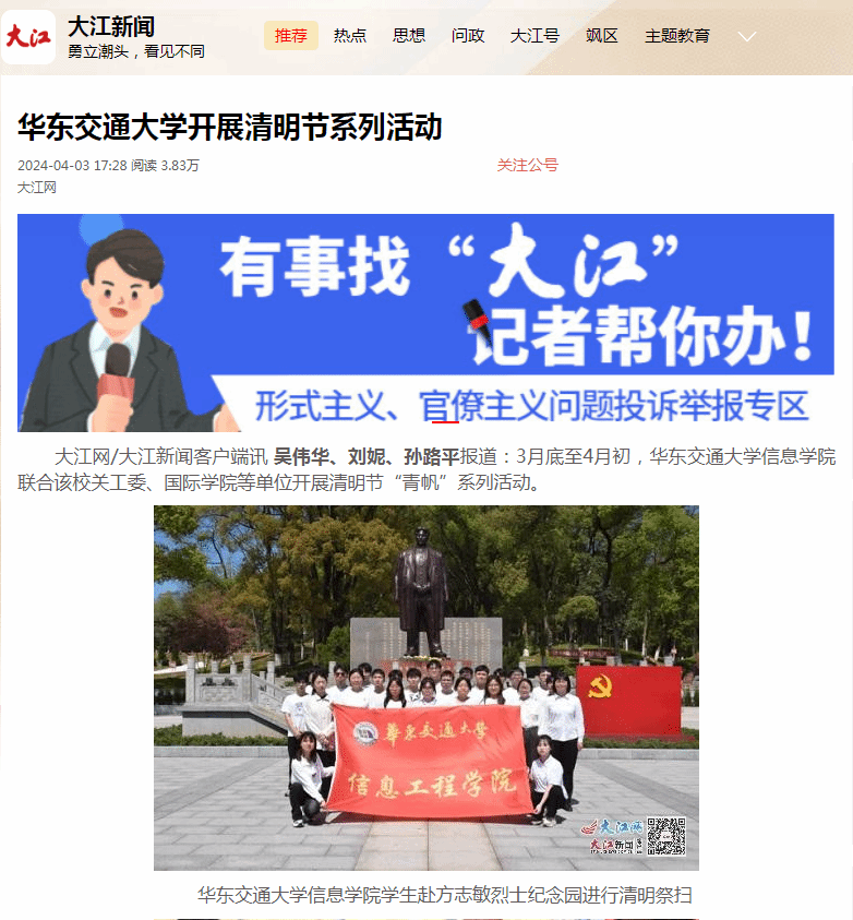 香港最新最准资料库信息学院学生赴方志敏烈士纪念园进行清明祭扫