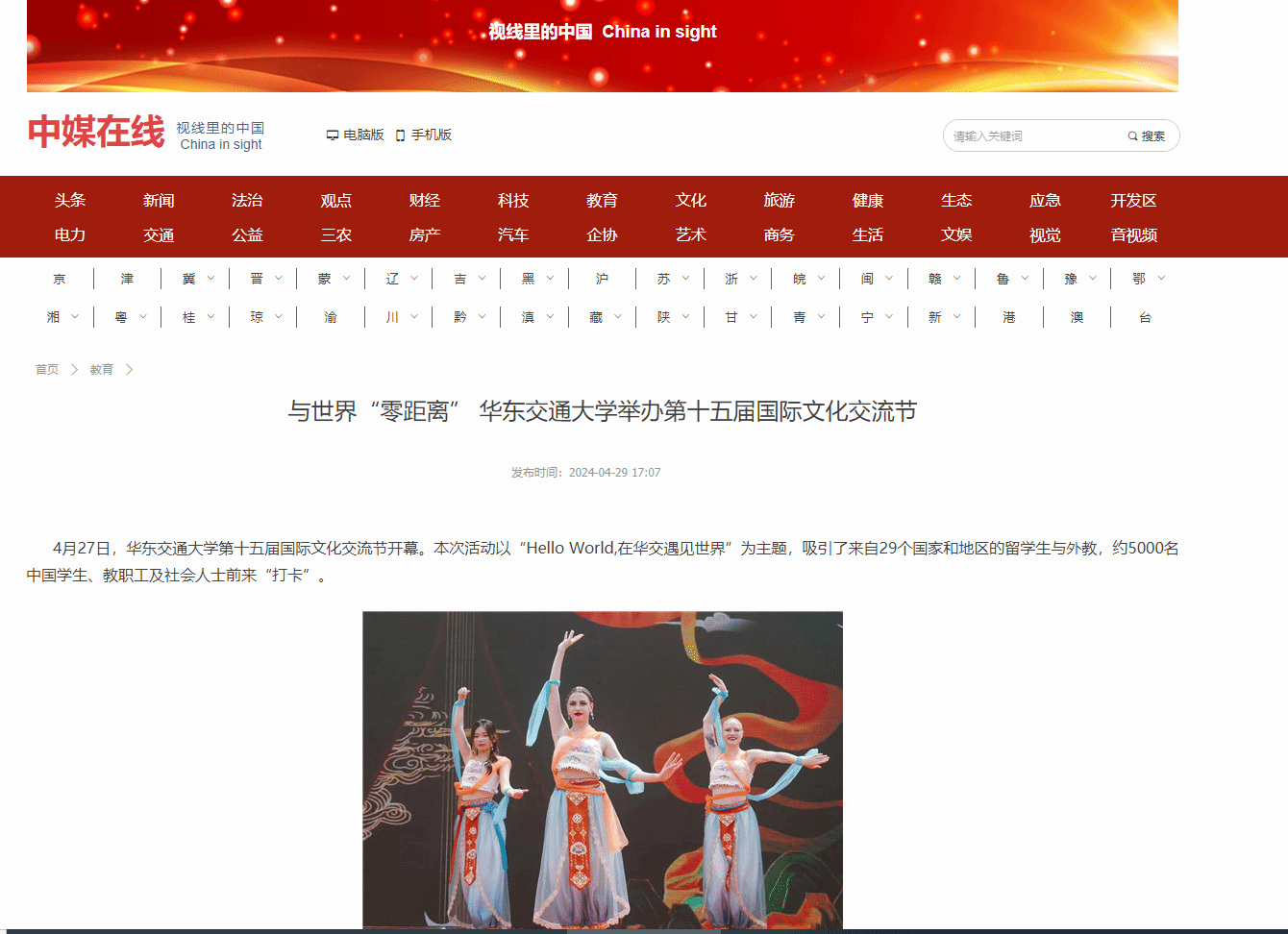 本届国际文化交流节以表演为媒介、以展位为平台,为中外学子搭建起了沟通合作、交流互鉴的桥梁。该校北区列车咖啡广场的舞台上,来自各个国家的交换生和中国学生合作完成了11场表演,开启了一场艺术与文化的盛宴。民族舞蹈《丝路幻影》中,来自俄罗斯的交换生和该校国际学院学生共同演绎敦煌古典舞,美丽的舞姿让人如痴如醉。“虽然文化背景不同,但我们对美的感悟、对中国文化的喜爱是相同的”,该校国际学院学生邱梓婕说道。在学习舞蹈前,俄罗斯交换生伊丽娜特意去学习了“丝绸之路”的历史,“中国的‘一带一路’政策是‘丝绸之路’的发展,因为‘一带一路’政策,俄罗斯和中国的联系得更加紧密了,我的交换生生活也更加有趣。”