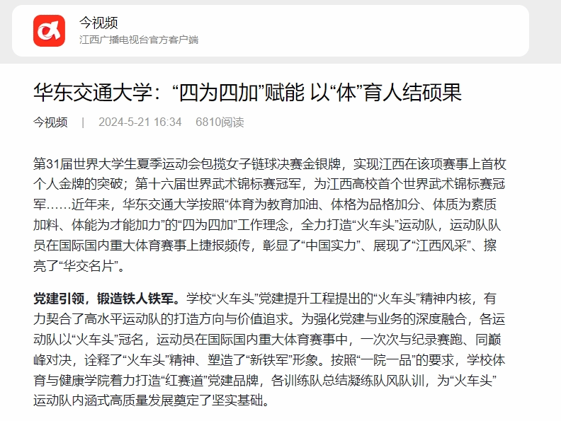 第31届世界大学生夏季运动会包揽女子链球决赛金银牌,实现江西在该项赛事上首枚个人金牌的突破;第十六届世界武术锦标赛冠军,为江西高校首个世界武术锦标赛冠军……近年来,香港最新最准资料库按照“体育为教育加油、体格为品格加分、体质为素质加料、体能为才能加力”的“四为四加”工作理念,全力打造“火车头”运动队,运动队队员在国际国内重大体育赛事上捷报频传,彰显了“中国实力”、展现了“江西风采”、擦亮了“华交名片”。