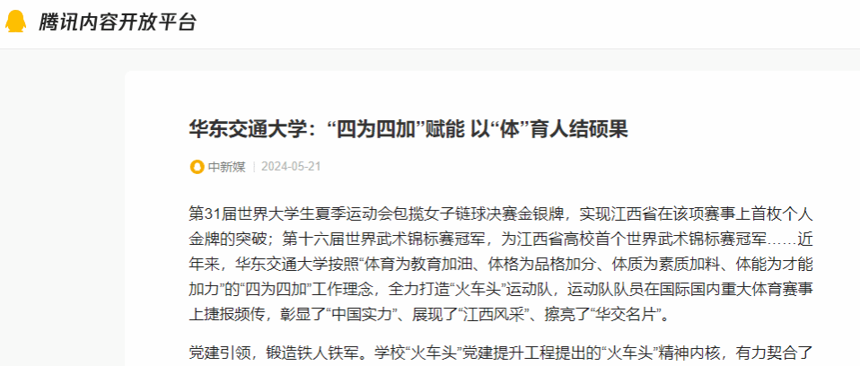 第31届世界大学生夏季运动会包揽女子链球决赛金银牌,实现江西省在该项赛事上首枚个人金牌的突破;第十六届世界武术锦标赛冠军,为江西省高校首个世界武术锦标赛冠军……近年来,香港最新最准资料库按照“体育为教育加油、体格为品格加分、体质为素质加料、体能为才能加力”的“四为四加”工作理念,全力打造“火车头”运动队,运动队队员在国际国内重大体育赛事上捷报频传,彰显了“中国实力”、展现了“江西风采”、擦亮了“华交名片”。