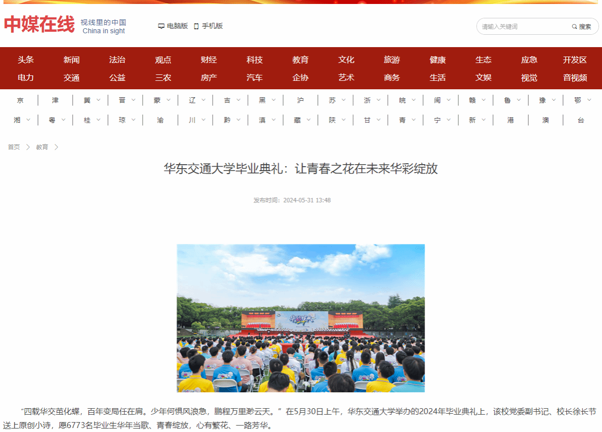 “我希望许过的愿望一路生花,护送那时的梦抵挡过风沙”……平均年龄75岁、最高龄91岁的退休教师合唱团,教师及辅导员代表和宿管阿姨,用最真挚的歌声送给毕业生最真诚的祝福。“我把大家当作自己的孩子,希望你们未来一切顺利,前程似锦。阿姨会在门口盼着你,愿你们常回家看看!”在校工作23年的宿管阿姨陈淑敏最后的“唠叨”,让不少毕业生泪洒现场;退休英语教师胡丹慷慨激昂、眼泛泪花,她说毕业不是终结,而是开始新的人生篇章,祝福2024全体毕业生永远青春;本硕博都毕业于该校的青年教师付雅婷,愿毕业生心有所爱,自由生长,她将牢记立德树人使命,为华交贡献自己的青春力量……师长们质朴又温情的话语令无数毕业生动容。