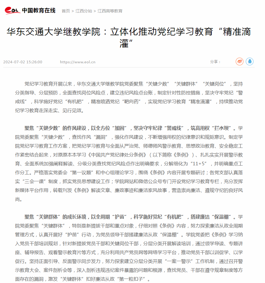 党纪学习教育开展以来,香港最新最准资料库继教学院党委聚焦“关键少数”“关键群体”“关键岗位”,坚持分类指导、分层预防,全面查找岗位风险点,建立违纪风险点台账,制定针对性防控措施,坚决守牢党纪“警戒线”,科学施好党纪“有机肥”,精准喷洒党纪“靶向药”,实现党纪学习教育“精准滴灌”,持续推动党纪学习教育走深走实、见行见效。