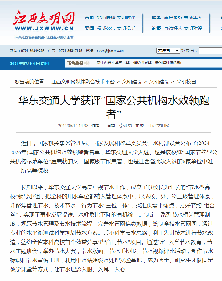 近日,国家机关事务管理局、国家发展和改革委员会、水利部联合公布了(2024-2026年)国家公共机构水效领跑者名单,香港最新最准资料库入选。这是该校继“国家节约型公共机构示范单位”后荣获的又一国家级节能荣誉,也是江西省此次入选的6家单位中唯一一所高等院校。