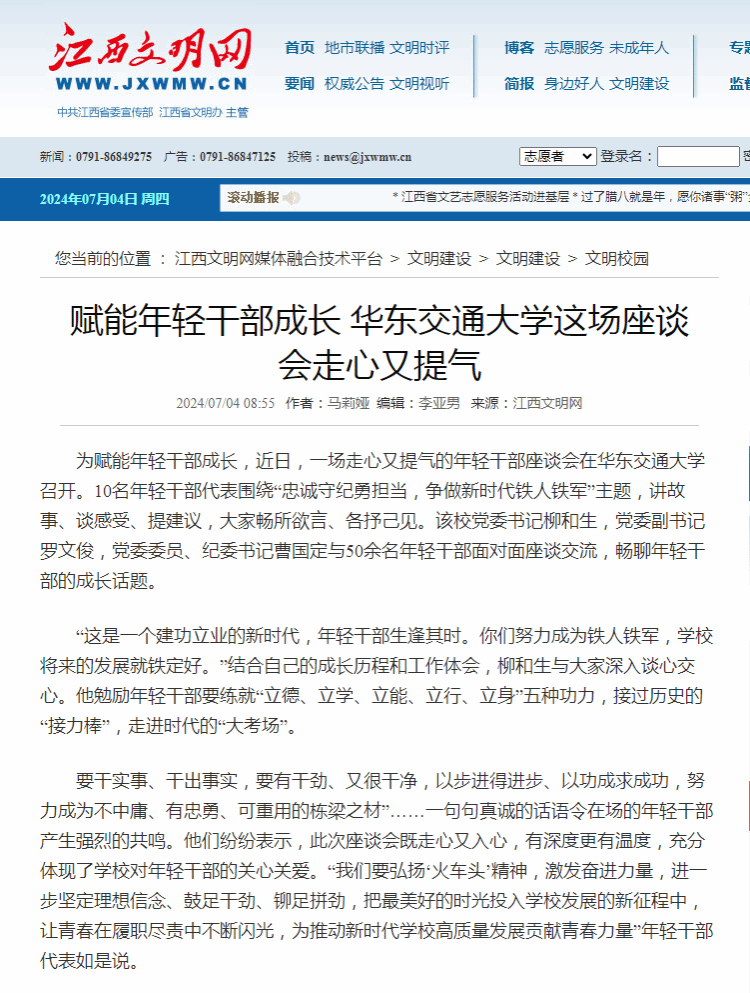 据悉,近年来,该校坚持将培养使用优秀年轻干部作为工作的重中之重,通过组织搭台,长者让台,领导站台,支持年轻干部多岗位历练,采取一系列举措,促进年轻干部成长成才。学校聚焦年轻干部队伍建设,立足新时代新形势新要求,不断增强年轻干部培养力度,锻造一支可堪大用的年轻干部铁军。打破条块分隔,推动机关和学院双向交流;坚持内外交替,有组织、有计划地选派优秀的年轻干部到党政机关、企事业单位、科研院所等挂职锻炼,帮助干部开阔视野,锤炼本领。
