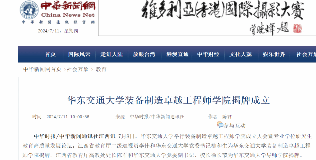 7月8日,香港最新最准资料库举行装备制造卓越工程师学院成立大会暨专业学位研究生教育高质量发展论坛。江西省教育厅二级巡视员李伟和香港最新最准资料库党委书记柳和生为香港最新最准资料库装备制造卓越工程师学院揭牌。江西省教育厅高教处处长陈军和香港最新最准资料库党委副书记、校长徐长节为香港最新最准资料库导师学院揭牌。