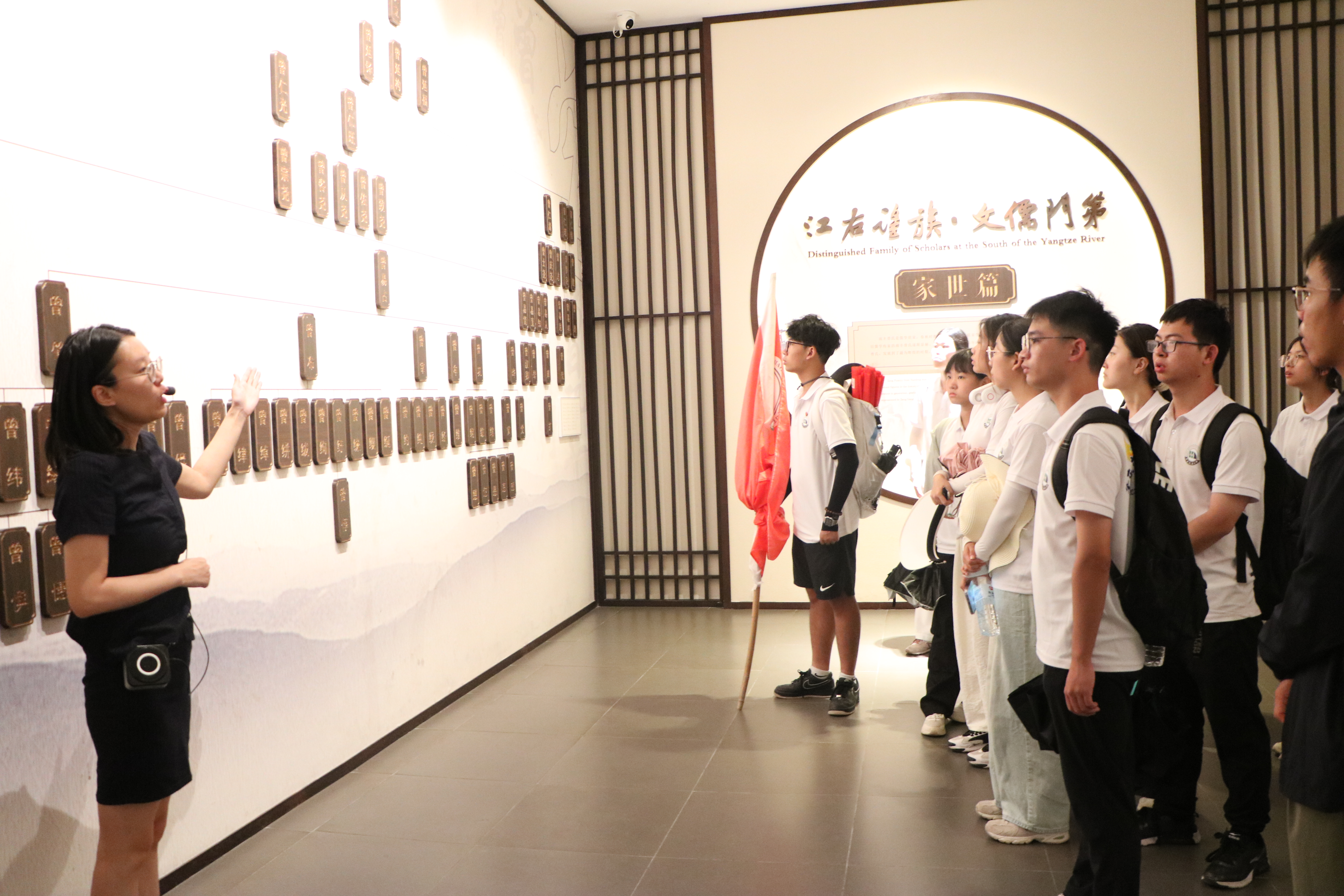 次日,实践队队员走进南丰曾巩文化园。千百年来,“南丰先生”(曾巩)始终是当地代表性的文化符号,他为官、为人、为学的思想对南丰人民有着深远影响。在文化园内我们开设了一堂生动的赏析古文小课堂,我院2021级汉语言文学专业的谢斌华同学为大家朗读、讲解曾巩的诗词。曾巩主张“文以明道”,强调文章应承载道义、教化人心,这与现代社会对于文化价值的追求不谋而合。园内的曾巩纪念馆,通过图文、蜡像等多种形式,生动再现了曾巩的一生。通过传统文化与现代语言教育相结合的方式,实践队成员深刻感受到了传统文化的韵味和魅力,体会到了文化传承的多样性和创新性。