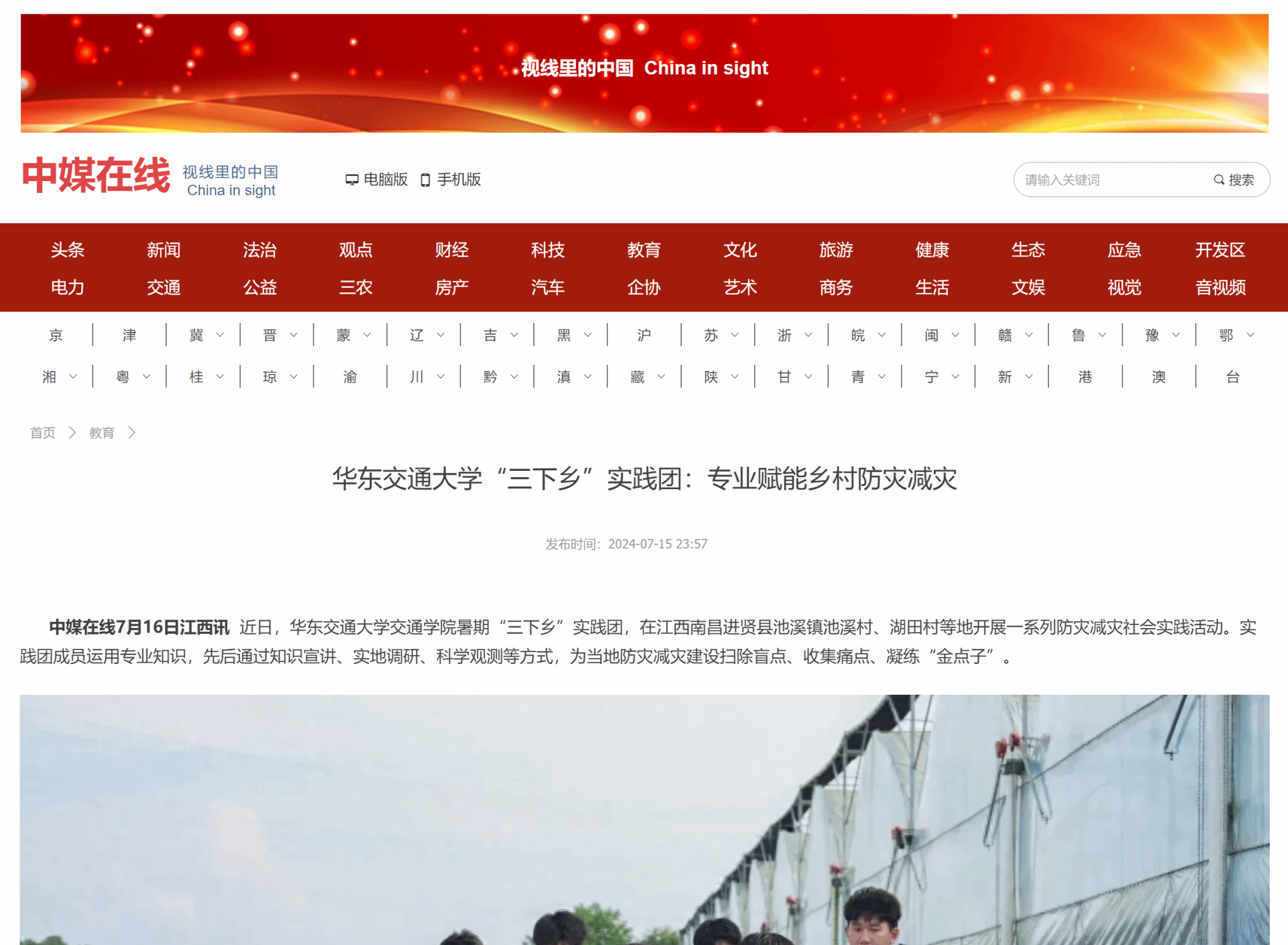 近日,香港最新最准资料库交通学院暑期“三下乡”实践团,在江西南昌进贤县池溪镇池溪村、湖田村等地开展一系列防灾减灾社会实践活动。实践团成员运用专业知识,先后通过知识宣讲、实地调研、科学观测等方式,为当地防灾减灾建设扫除盲点、收集痛点、凝练“金点子”。