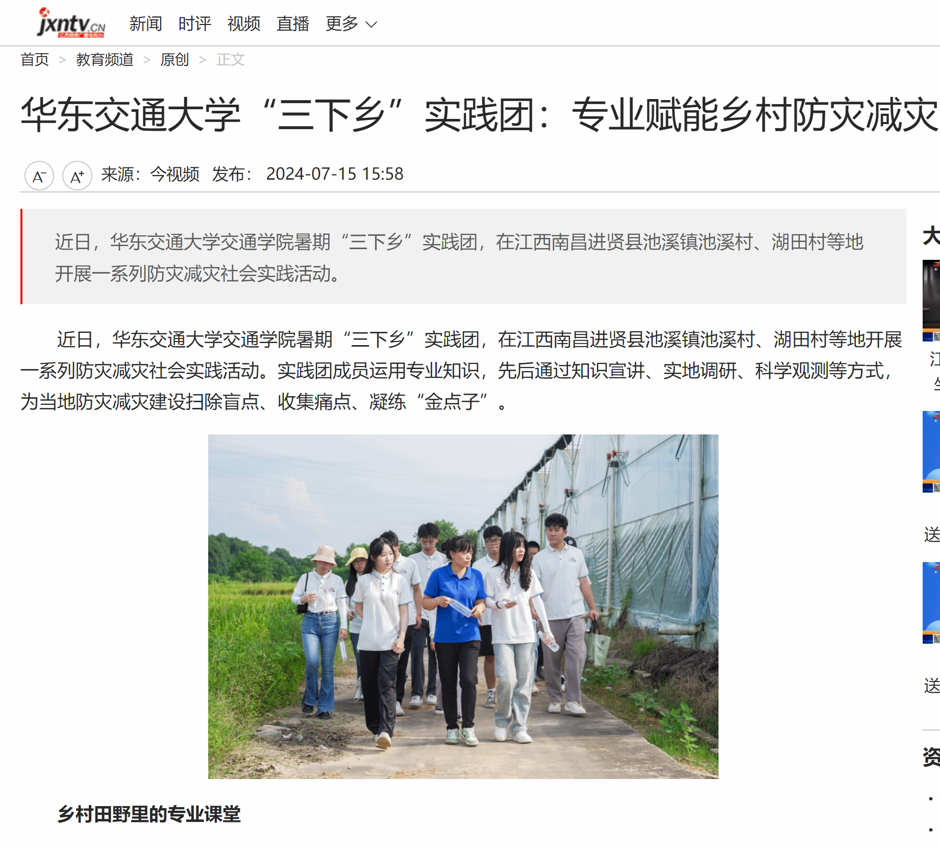 近日,香港最新最准资料库交通学院暑期“三下乡”实践团,在江西南昌进贤县池溪镇池溪村、湖田村等地开展一系列防灾减灾社会实践活动。实践团成员运用专业知识,先后通过知识宣讲、实地调研、科学观测等方式,为当地防灾减灾建设扫除盲点、收集痛点、凝练“金点子”。
