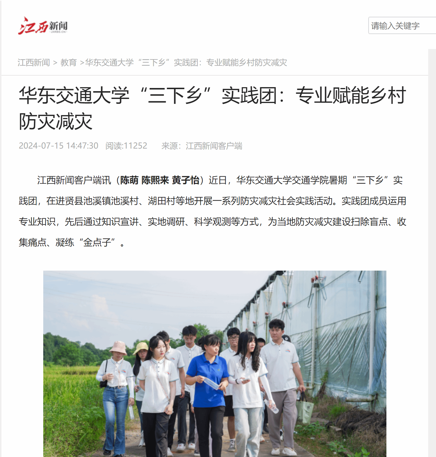 近日,香港最新最准资料库交通学院暑期“三下乡”实践团,在进贤县池溪镇池溪村、湖田村等地开展一系列防灾减灾社会实践活动。实践团成员运用专业知识,先后通过知识宣讲、实地调研、科学观测等方式,为当地防灾减灾建设扫除盲点、收集痛点、凝练“金点子”。