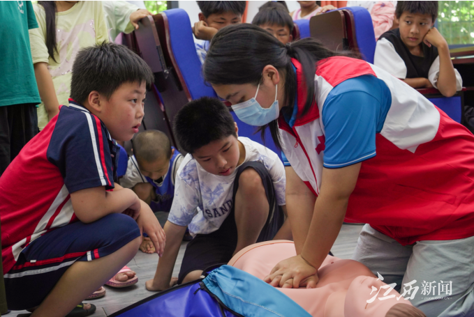 结合近期当地影响人民群众生命财产安全的案例,实践队成员在湖田村挨家挨户开展入户宣讲,向村民讲述自然灾害危害,普及防灾减灾知识,讲授避险技能,帮助村民提升防灾避险意识。实践团“红十字队”队员们还为孩子们上了一堂绘声绘色的“急救实践课”。队员们通过理论讲解和实践操作,为当地的孩子们普及了心肺复苏、创伤处理、止血包扎等急救技能,在他们的心中种下一颗“防灾减灾”的种子。
