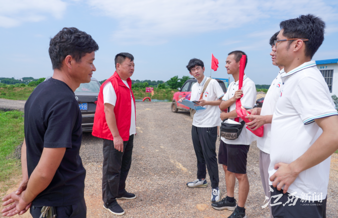 进贤县三面环水,是典型的农业大县、水利大县、防洪重点县。全县共有92条圩堤,其中5万亩以上圩堤3条,保护耕地面积33.81万亩。正值汛期,实践团成员先后前往湖田村委会、池溪镇政府,通过采访当地村、镇干部的方式,收集当地防灾减灾落实过程中的实际痛点,为开展实地观测、提供相应解决方案提供支持。