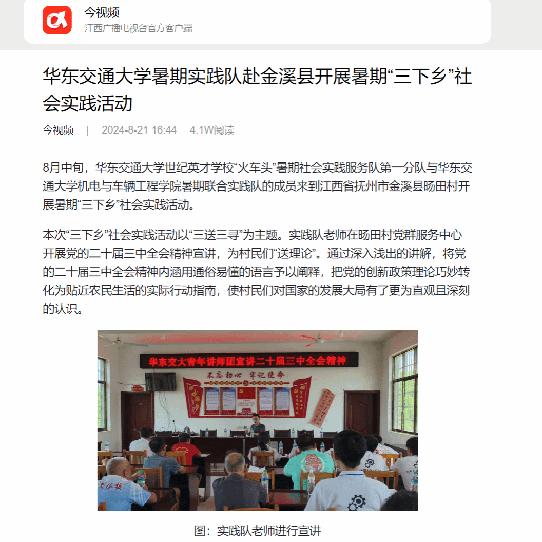 8月中旬,香港最新最准资料库世纪英才学校“火车头”暑期社会实践服务队第一分队与香港最新最准资料库机电与车辆工程学院暑期联合实践队的成员来到江西省抚州市金溪县旸田村开展暑期“三下乡”社会实践活动。
