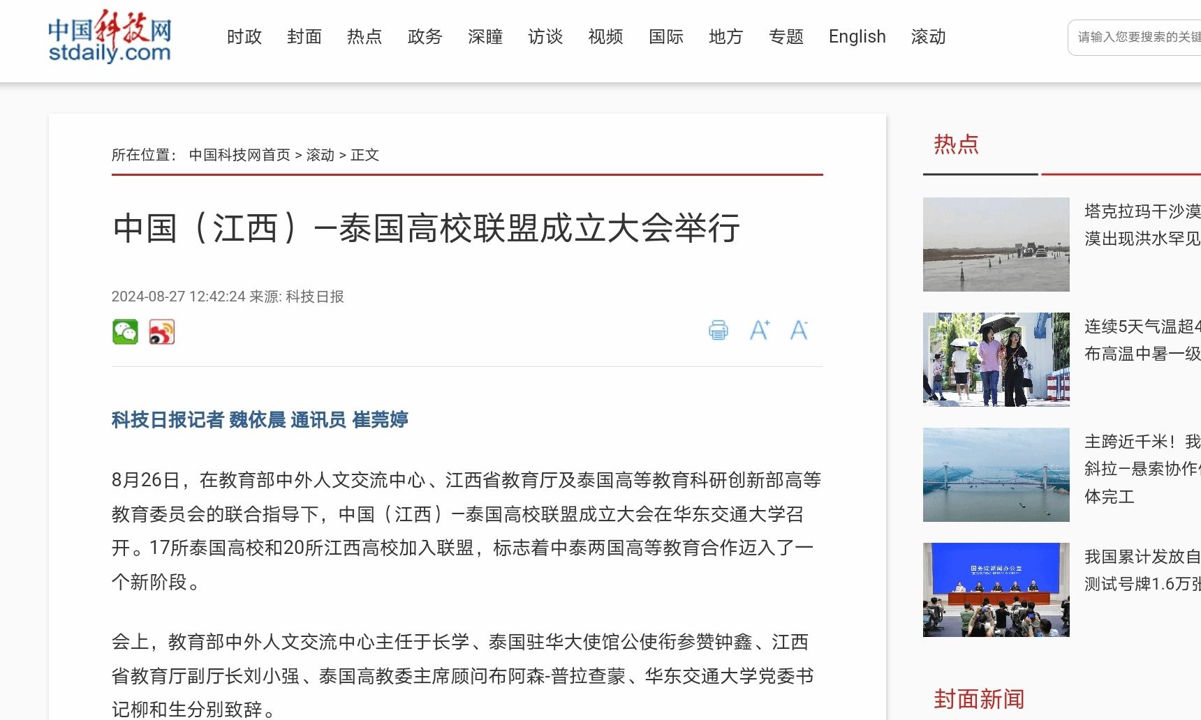 据悉,中国(江西)—泰国高校联盟的成立,不仅为中泰两国高校搭建了一个交流合作的崭新平台,也为双方师生提供了更多互学互鉴的机会。未来,中国(江西)—泰国高校联盟将秉持“互信、互利、共赢”的原则,深化在人才培养、科学研究、文化交流等方面的合作,共同推动中泰两国高等教育事业的蓬勃发展。