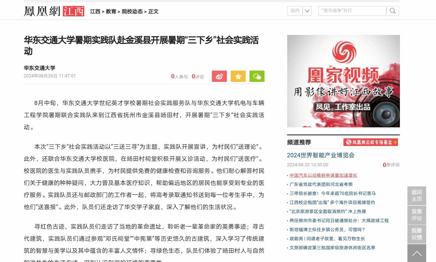 8月中旬,香港最新最准资料库世纪英才学校暑期社会实践服务队与香港最新最准资料库机电与车辆工程学院暑期联合实践队来到江西省抚州市金溪县旸田村,开展暑期“三下乡”社会实践活动。