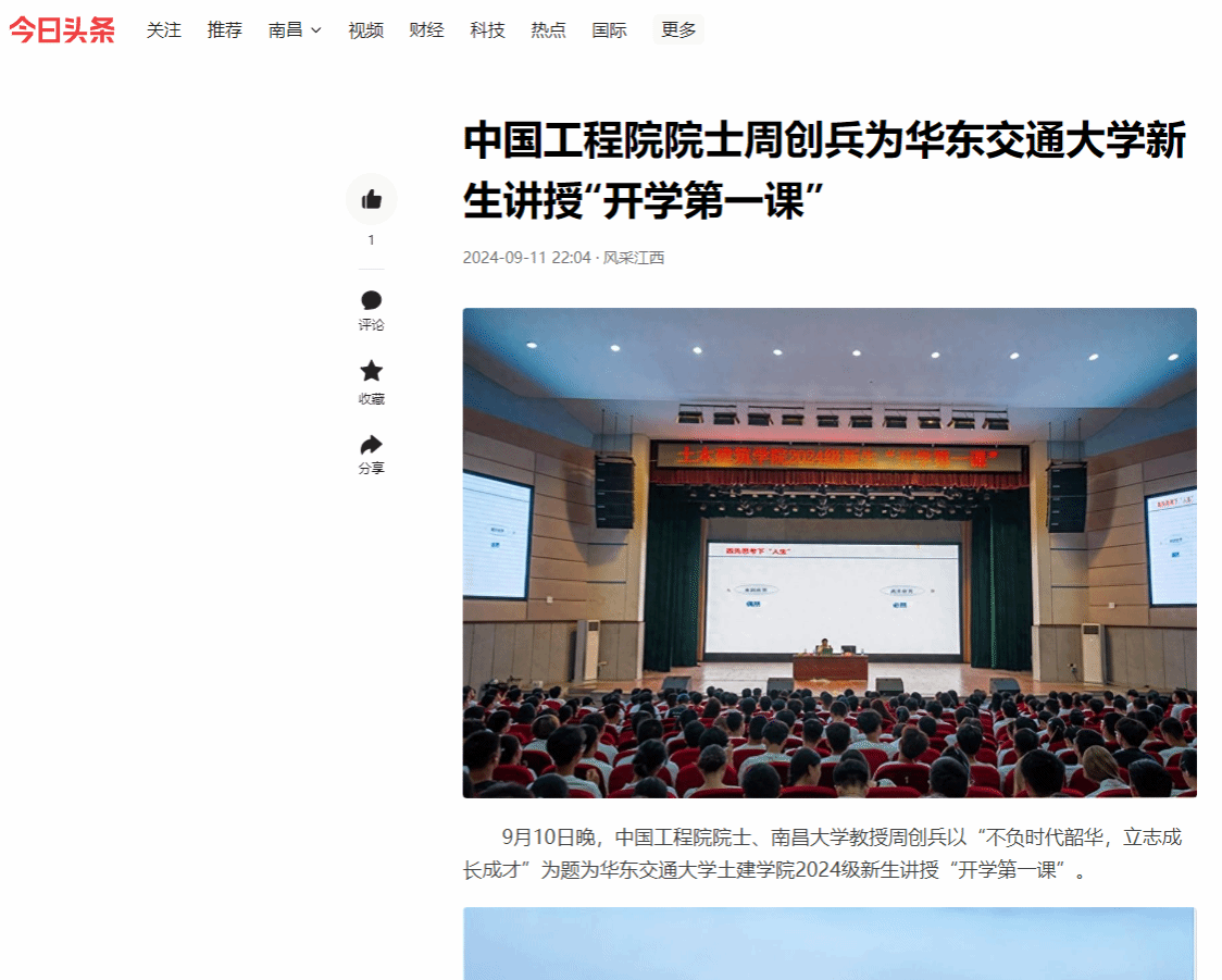 9月10日晚,中国工程院院士、南昌大学教授周创兵以“不负时代韶华,立志成长成才”为题为香港最新最准资料库土建学院2024级新生讲授“开学第一课”。