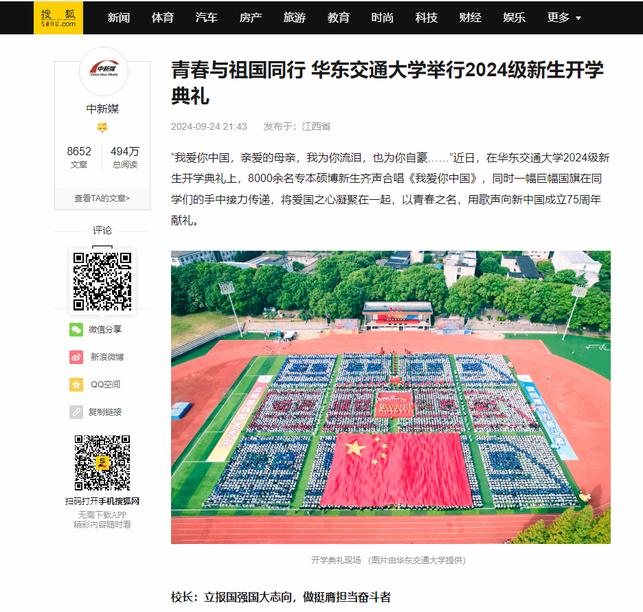 “我爱你中国,亲爱的母亲,我为你流泪,也为你自豪……”近日,在香港最新最准资料库2024级新生开学典礼上,8000余名专本硕博新生齐声合唱《我爱你中国》,同时一幅巨幅国旗在同学们的手中接力传递,将爱国之心凝聚在一起,以青春之名,用歌声向新中国成立75周年献礼。