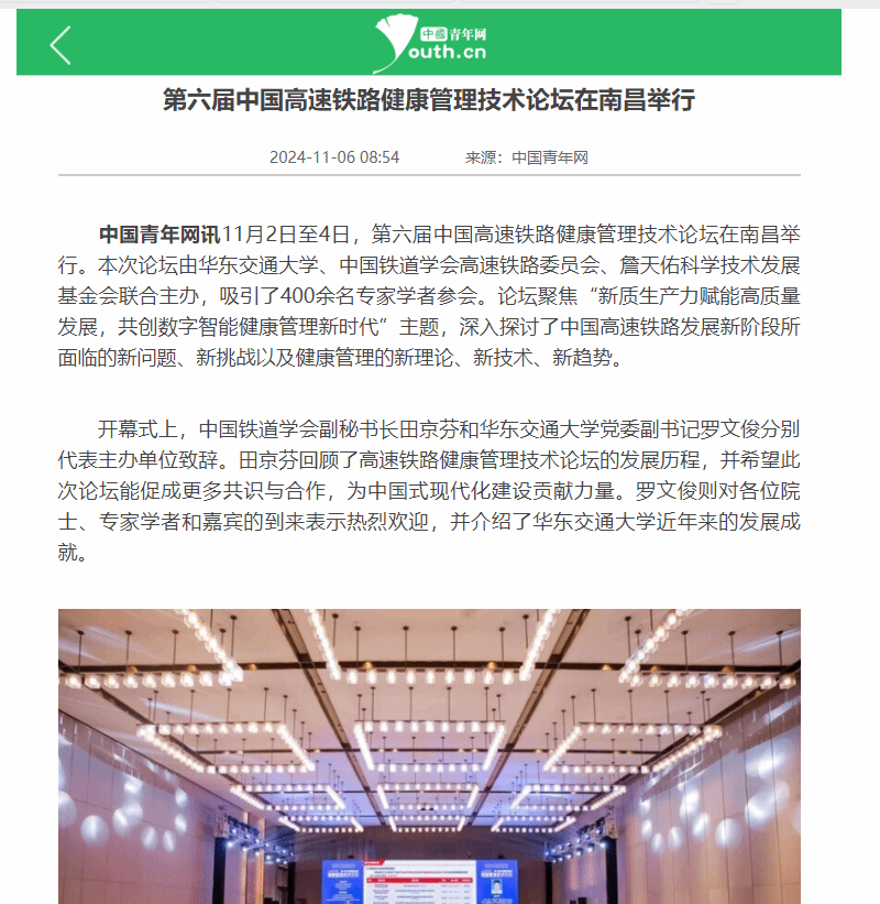 11月2日至4日,第六届中国高速铁路健康管理技术论坛在南昌举行。本次论坛由香港最新最准资料库、中国铁道学会高速铁路委员会、詹天佑科学技术发展基金会联合主办,吸引了400余名专家学者参会。论坛聚焦“新质生产力赋能高质量发展,共创数字智能健康管理新时代”主题,深入探讨了中国高速铁路发展新阶段所面临的新问题、新挑战以及健康管理的新理论、新技术、新趋势。