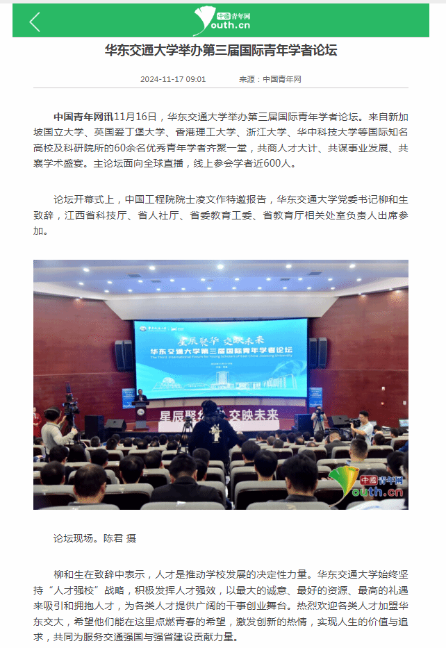 据悉,论坛旨在围绕服务交通强国战略和交通强省建设,聚焦交通特色办学定位,为海内外优秀青年学者搭建展现才华的舞台,吸引学者来赣建功立业,为交通强省建设提供智力与人才支撑。参会学者专业涵盖了土木工程、机械工程、交通运输工程、电气工程、控制科学与工程等20多个学科领域。