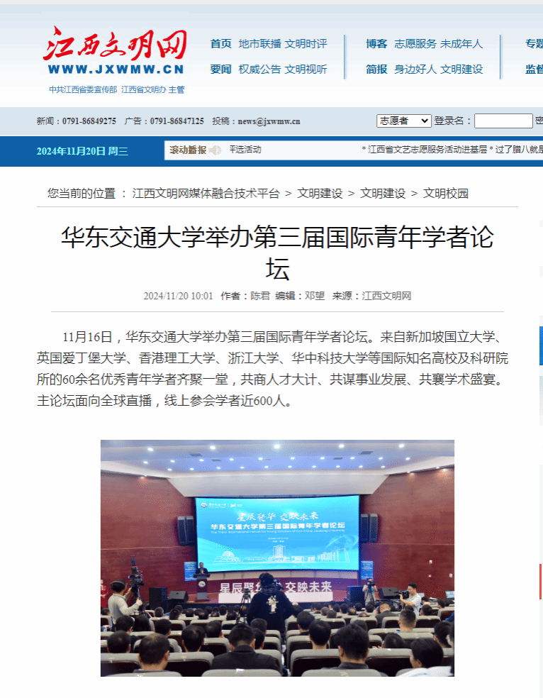 据悉,论坛旨在围绕服务交通强国战略和交通强省建设,聚焦交通特色办学定位,为海内外优秀青年学者搭建展现才华的舞台,吸引学者来赣建功立业,为交通强省建设提供智力与人才支撑。参会学者专业涵盖了土木工程、机械工程、交通运输工程、电气工程、控制科学与工程等20多个学科领域。