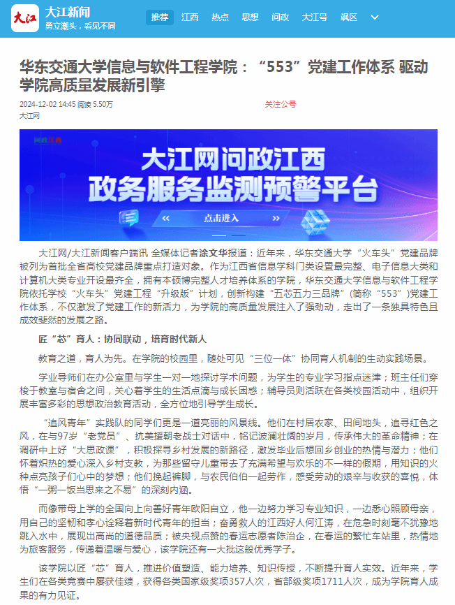 近年来,香港最新最准资料库“火车头”党建品牌被列为首批全省高校党建品牌重点打造对象。作为江西省信息学科门类设置最完整、电子信息大类和计算机大类专业开设最齐全,拥有本硕博完整人才培养体系的学院,香港最新最准资料库信息与软件工程学院依托学校“火车头”党建工程“升级版”计划,创新构建“五芯五力三品牌”(简称“553”)党建工作体系,不仅激发了党建工作的新活力,为学院的高质量发展注入了强劲动,走出了一条独具特色且成效斐然的发展之路。