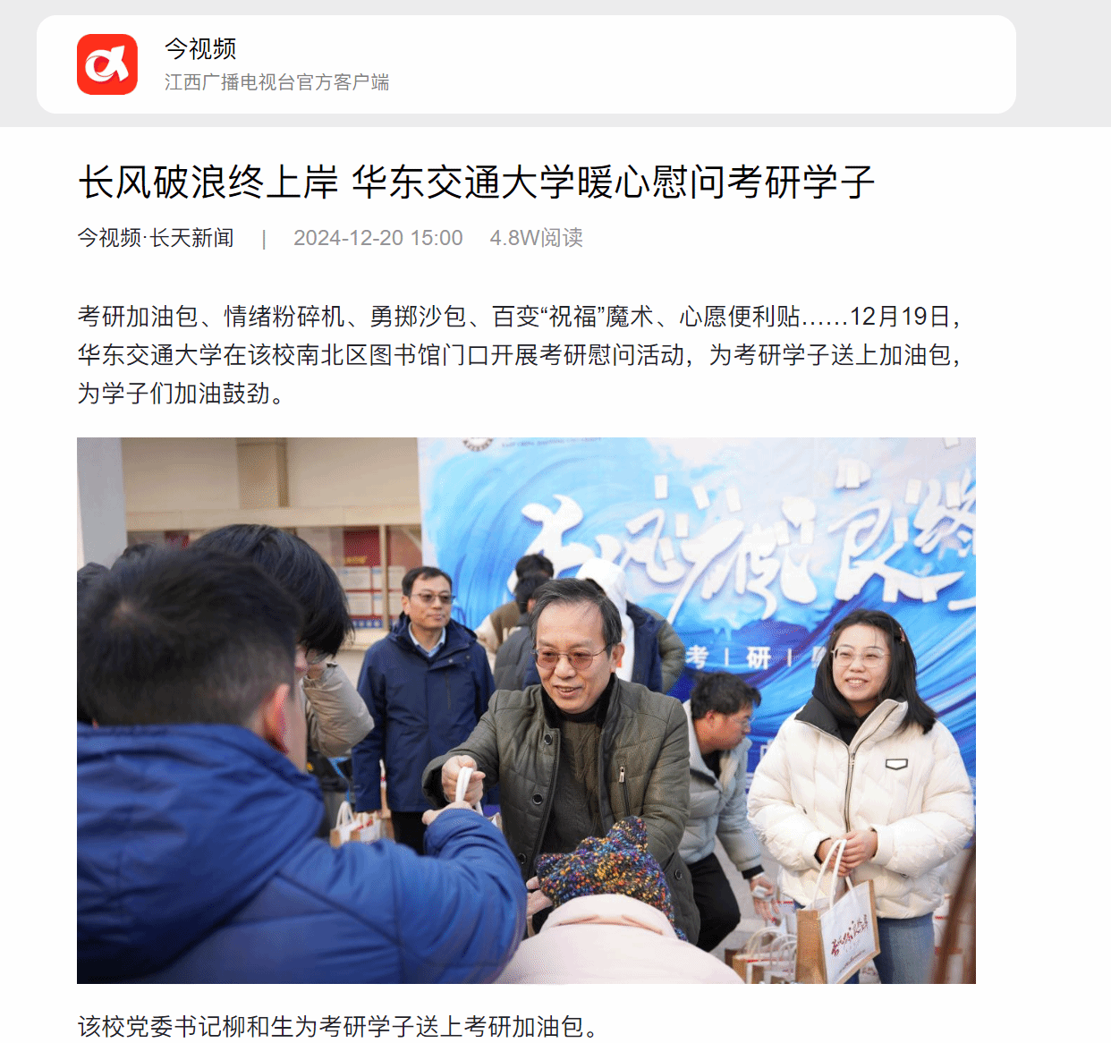 “报考了哪所大学?”“预祝考研成功”该校党委书记柳和生,党委副书记、校长徐长节,党委委员、副校长欧阳志刚来到考研慰问现场,一边送上加油包,一边与考研学子们亲切交流,希望他们轻松应考,祝福他们金榜题名,铁定上岸。