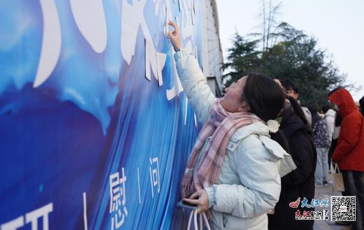 “全力以赴!加油!”“稳住心态、下笔如有神,我一定会上岸的!”……同学们纷纷将心愿写在心愿卡上,或踮着脚尖,或一跃而起,努力将心愿卡贴到许愿墙的更高处,希冀愿望成真。