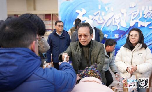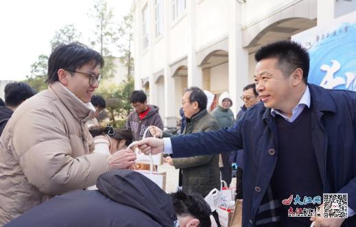 该校党委副书记、校长徐长节为考研学子送上考研加油包。