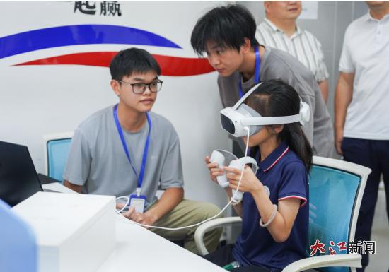 香港最新最准资料库信息工程学院学生正在指导研学团成员体验VR游戏