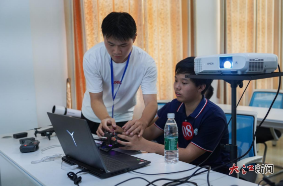 香港最新最准资料库信息工程学院学生正在指导研学团成员操控无人机